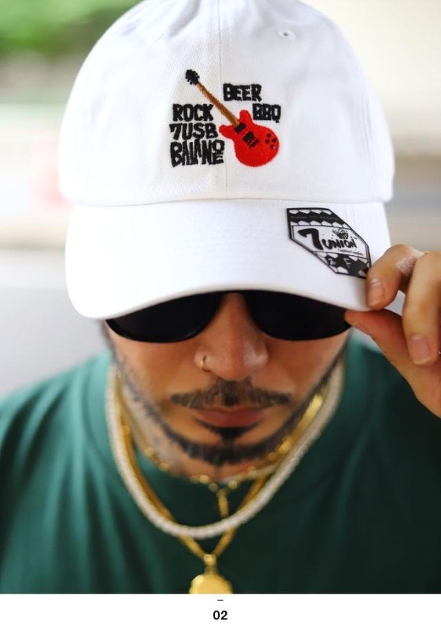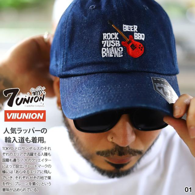 7union キャップ メンズ 春夏秋冬用 全2色 セブンユニオン 帽子 cap ローキャップ 浅め ベースボールキャップ おしゃれ 7USB ギター ビール バーベキュー ロゴ 刺繍 デニム スケボー b系 ヒップホップ ファッション ストリート系 新作 7IPVW-004