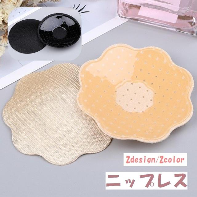 ニップレス レディース 女性 婦人 インナー 下着 肌着 ノーブラ シリコン パッド 丸型 花型 シンプル 透け防止 ブラック