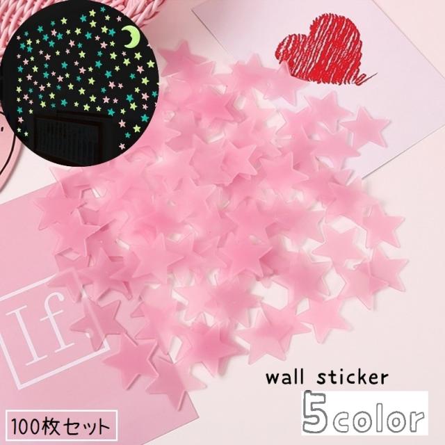 ウォールステッカー 蓄光 壁ステッカー 100枚入り 光る 夜光 星 スター 夜空 壁飾り インテリア雑貨 インテリア小物 ウォ