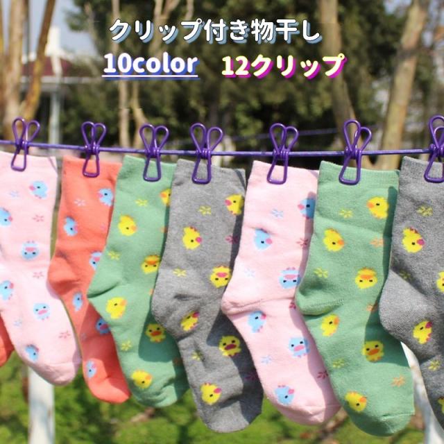 クリップ付き物干し 物干し 日用品 生活雑貨 洗濯用品 クリップ ピンチ 洗濯ばさみ 12ピンチ 格納式 防風 弾性 部屋干し