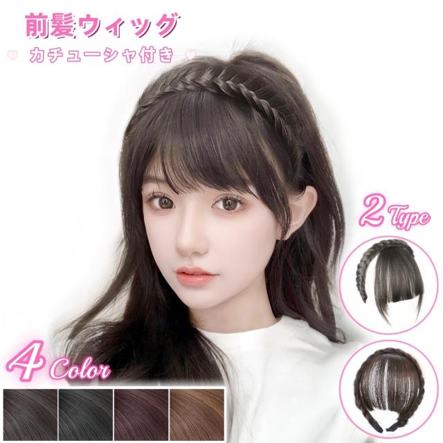 ヘアアレンジが楽しめる三つ編みカチューシャ付き前髪ウィッグです。