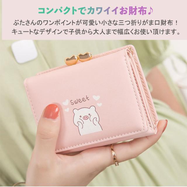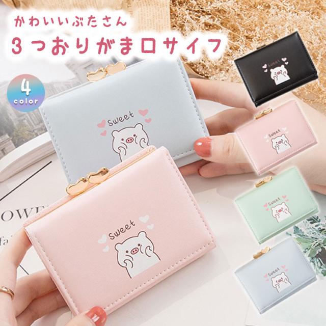 財布 レディース 三つ折り がま口 おしゃれ 口金 ブタ 動物 小さい 取り出しやすい 大容量 キャラクター かわいい カード入れ 多い ブラック 黒 こども サイフ レトロ お洒落 ブランド 小銭入れ 札入れ 薄型 高校生 小学生 中学生 女子高生