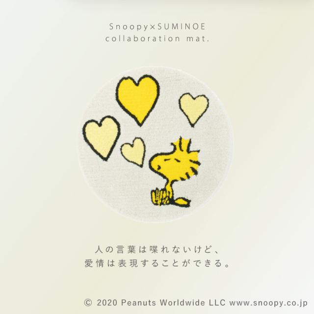 ウッドストックが吹き出すイエローのハートが可愛いデザインマット。