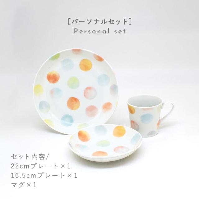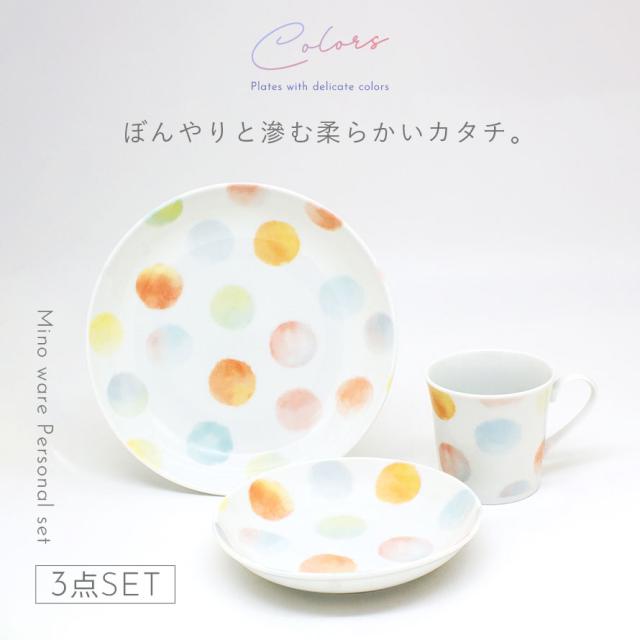 食器セット プレゼント お皿 マグカップ セット 食器 日本製 美濃焼 北欧 おしゃれ 水玉 食洗機 レンジ対応 カラーズ パーソナルセット