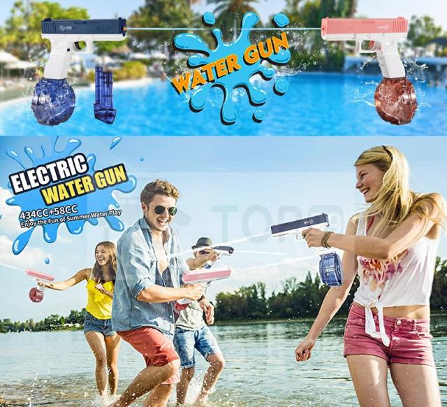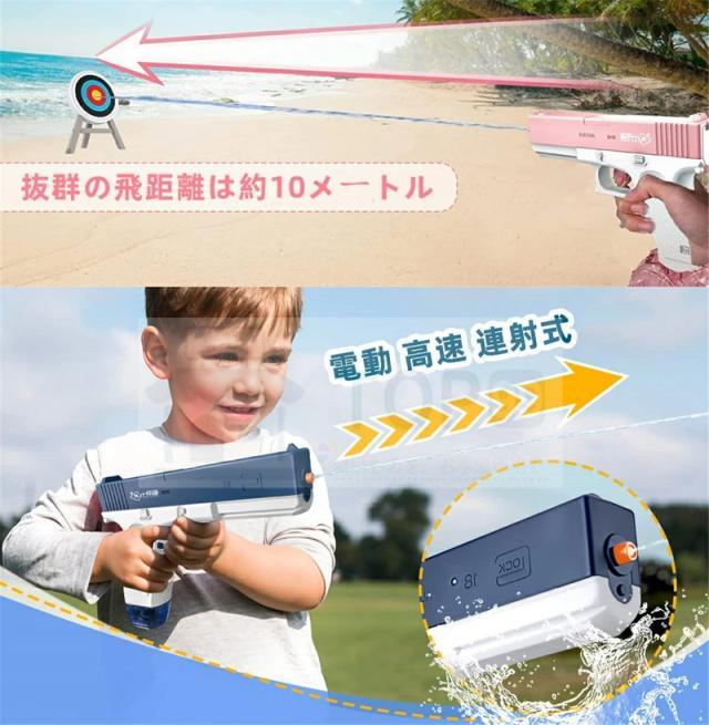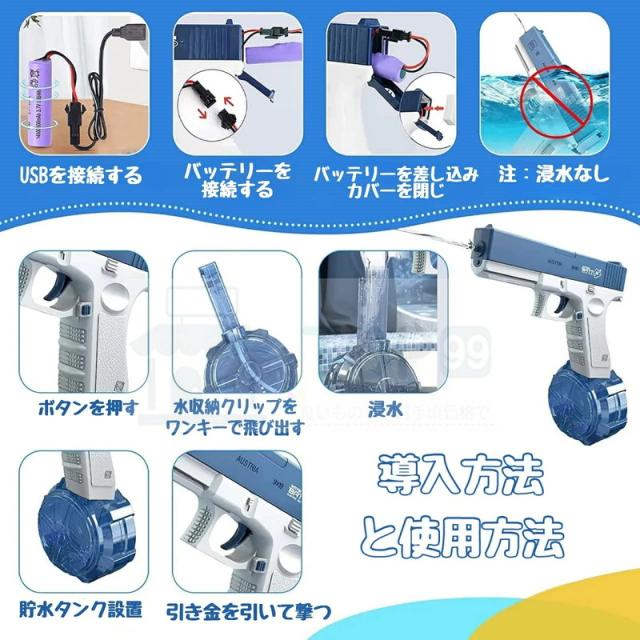 水鉄砲 電動式連射水鉄砲 自動ウォーターガン 電動水ピストル 水鉄砲合戦 水遊び 夏祭り 子供 大人兼用 海水浴 お風呂 プール 川遊び