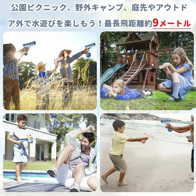 【従来型にサヨナラ! 】ワンタッチ発射で、手動で加圧する手間はありません。水鉄砲の射程距離は8~10Mと超長距離なので、このワクワクする季節に、お友達やお子さんと水鉄砲バトルで盛り上がりましょう。