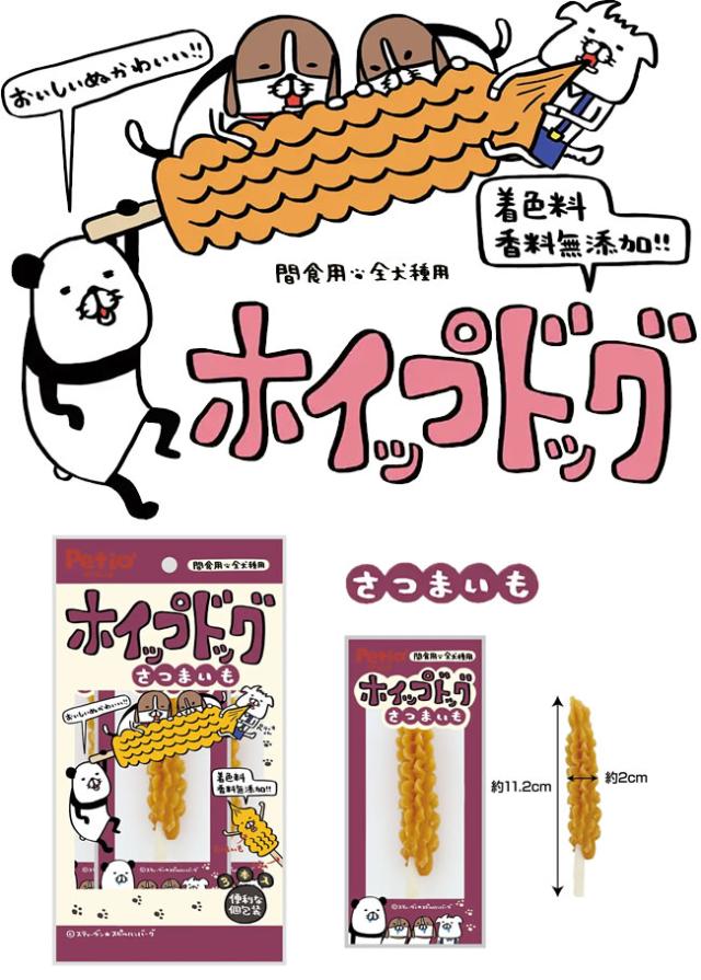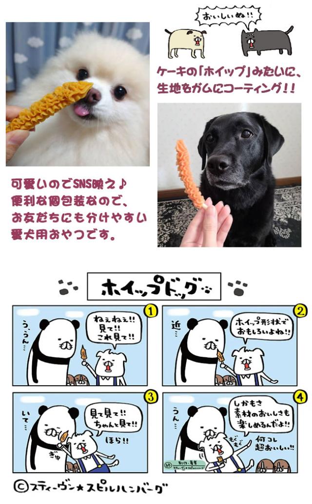 ・ケーキの「ホイップ」のように、さつまいも生地をガムにコーティングした愛犬用おやつです。