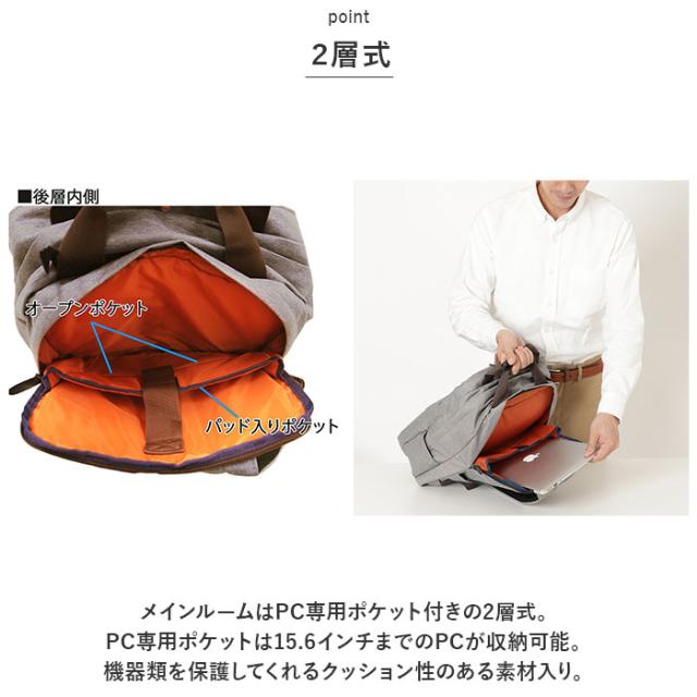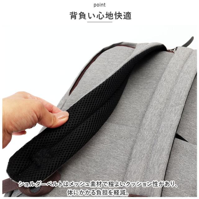 | 商品説明 | ・充実した機能性!「SAND GLASS (サンドグラス) ビジネスリュック」が発売。 【ダブルファスナー式】 ・開口部は大きく開くダブルファスナー式。中身が確認しやすく、出し入れもラクラク。ファスナーは、引き手を引っ張らないと開かないロックスライダーを採用。振動などで自然に開いてしまうのを防いでくれる。 【2層式】 ・メインルームはPC専用ポケット付きの2層式。PC専用ポケットは15.6インチまでのPCが収納可能。機器類を保護してくれるクッション性のある素材入り。 【A4サイズ対応でたっぷり入る!】 ・A4サイズのファイルが収まる!しっかりと深さがあり、仕事に必要な荷物がひとまとめ◎ 【ポケット収納がたくさん】 ・天面のクイックポケットなど小物を収納できるポケット収納がたくさん!整理整頓ができ実用性◎ 【2WAY仕様】 ・リュックとしてはもちろん、ショルダー部分を背面ポケットに収納すれば手持ちにもできて便利。 【はっ水加工】 ・はっ水加工を施している生地なので、突然の雨でも安心。(※完全防水ではございません。) 【背負い心地快適】 ・ショルダーベルトはメッシュ素材で程よいクッション性があり、体にかかる負担を軽減。 【ベーシックカラー&デザイン】 ・コーディネートを選ばないカラー展開。ベーシックなデザインで年齢性別問わず使いやすく、様々なシーンで活躍。 【ポケット仕様】 ・メインルーム:ファスナーポケット×1、ペットボトルホルダー×1 ・PCポケット:面ファスナーベルト付きポケット×1、オープンポケット×2 ・上部:ファスナーポケット×1 ・フロント上部:メッシュファスナーポケット×1、ファスナーポケット×1、オープンポケット×2 ・フロント下部:ファスナーポケット×1(内側;オープンポケット×2) ・サイド:オープンポケット×2 ・背面:ファスナーポケット×1 |