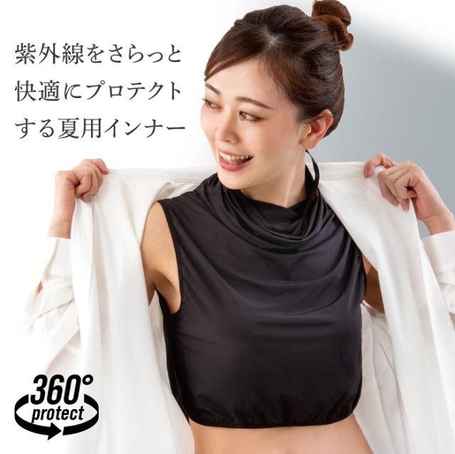 マスクがついたひんやり接触冷感UVインナーでデコルテを守ります