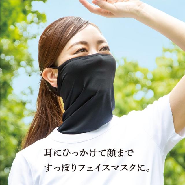 首元のマスクは耳に引っかけるとフェイスマスクに。