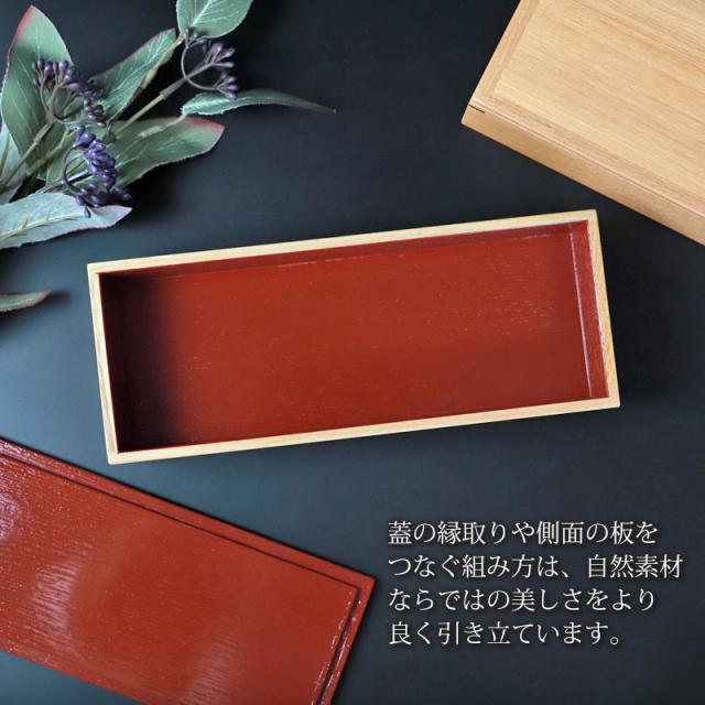 | 商品説明 | タモならではの質感と、ツヤを抑えた天然木の風合いが美しい松屋漆器店のお弁当箱です。 女性から男性の方までに対応するスタンダードな大きさのお弁当箱です。(容量約620ml) 内側が朱色塗りで料理が映える「内朱」になっています。 タモの調湿作用も期待できますので、ご飯がかたくなりにくく、電子レンジで温めなくても美味しく頂けます。 「クサビ」タイプと「組子」タイプよりお選びください。どちらも四角の組み合わせ部分が密接に組み合わさっている為、強度を増しており、デザイン的にも松屋漆器店ブランドの特徴的な意匠になります。 また、蓋の縁取りや側面の板をつなぐ組み方は、自然素材ならではの美しさをより良く引き立ています。 白木の軽やかさを持ち、サンドウィッチやパスタ、サラダなど、和食以外にも様々な料理に合わせることができ、アレンジ次第で用途は幅広くなりますね。 白木塗は自然の木目の魅力を最大限に生かした塗り技法であり、ウレタン塗装でありながら艶を抑えた仕上がりになっております。 一見、無垢の木の状態と見間違えるほどナチュラルな質感が感じられます。 白木塗のおかげで、清々しいタモの木目の美しさを存分に味わえるうえ、油や、色移りの心配も差ほどありません。 また、洗剤を使って洗うこともでき長く衛生的にご使用いただけます。 松屋漆器店とは 松屋漆器店は、福井県鯖江市河和田町にある、越前漆器の製造元です。創業は1905年と古く、1500年以上の歴史を持つ越前漆器の産地で、伝統技術を継承しつつ、現代のライフスタイルに合わせた商品開発を進めています。 松屋漆器店の特徴は、白木塗を用いたナチュラルな風合いの漆器を主力商品としていることです。 伝統的な技術を生かし、高品質な漆器を提供することにこだわっています。また、製品のデザインや使い勝手にもこだわりを持ち、お客様に満足していただける漆器を提供しています。 松屋漆器店は、越前漆器の魅力を世界に発信するため、国内外の展示会にも積極的に参加し、伝統的な越前漆器の技術を守りつつ、新しい価値を創造し、世界中に愛される漆器を生み出すことを目指しています。 ※仕切りは付属しておりません。 |