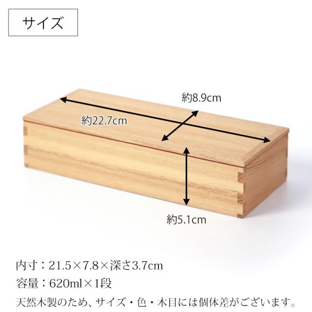 弁当箱 一段 620ml 大 お弁当箱 1段 松屋漆器店 白木塗 タモ 木製 長角 内朱 おしゃれ 大きい 大きめ 箱入 ナチュラル クサビ 組子 スリム 大人 男子 女子 ランチボックス プレゼント ギフト 日本製 国産 送料無料