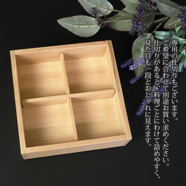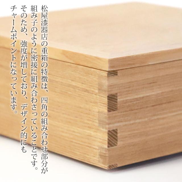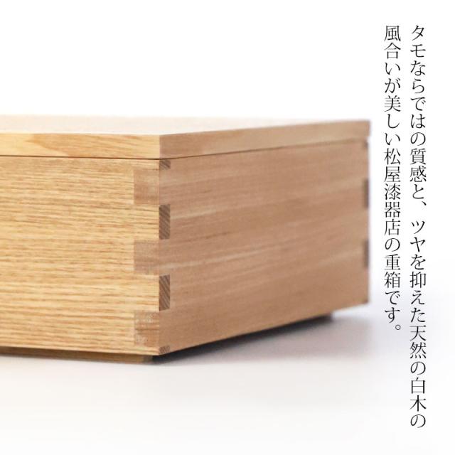 タモならではの質感と、ツヤを抑えた天然の白木の風合いが美しい松屋漆器店の重箱です。