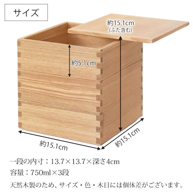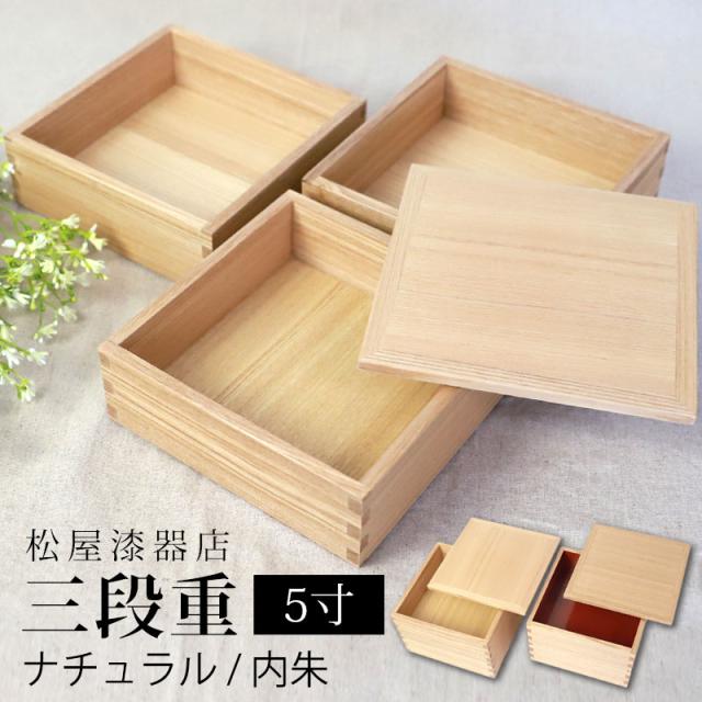 重箱 三段 5寸 15cm 松屋漆器店 白木塗 タモ 木製 ナチュラル 内朱 おしゃれ 箱入 3段重 三段重 お重 シンプル おせち 弁当 お節 御節 正月 花見 行楽 懐石 仕出し 高級弁当 サンドウィッチ 焼き菓子 和風 洋風 日本製