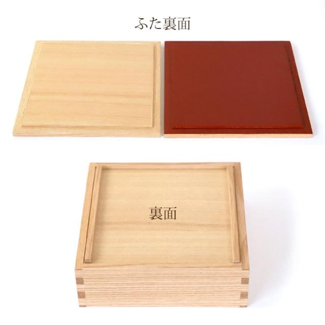 内側、外側ともに白木塗でシンプルで統一感のある「ナチュラル」と、内側が朱色塗りで料理が映える「内朱」の2タイプがございます。