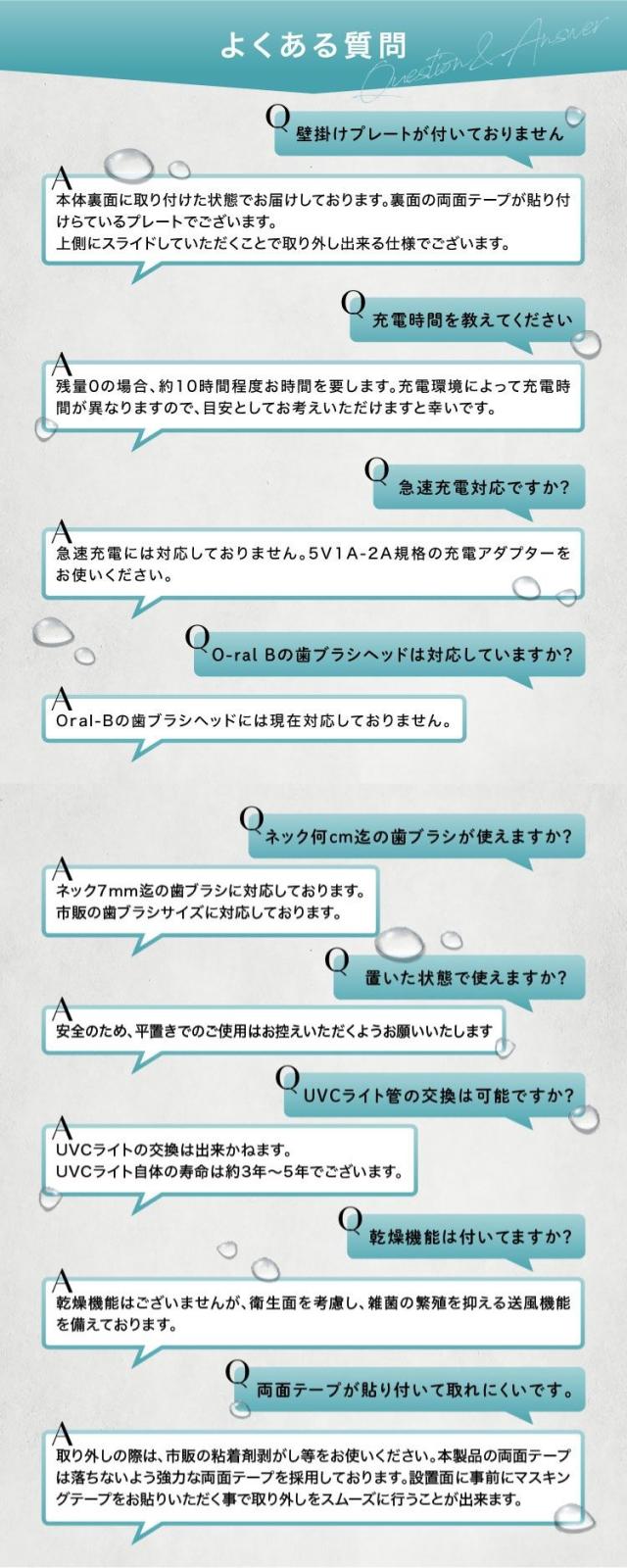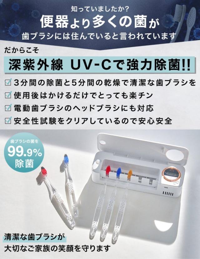 - 前に使っていた他社のUV除菌ケースが壊れたのでこちらの商品を買わせて頂いたのですが、使い勝手が良く、常に歯ブラシが乾燥した状態なので、気持ち良く歯磨きが出来ます。とても良い買い物をしたと思います。