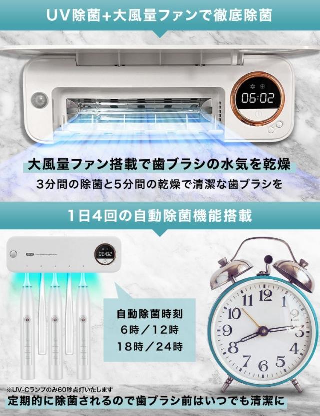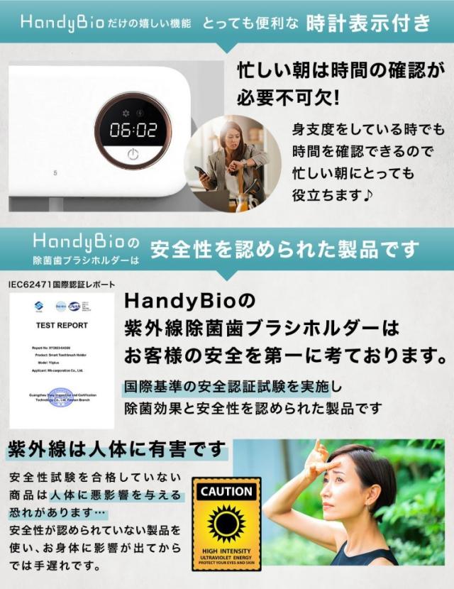 歯ブラシ 除菌 歯ブラシ除菌機 歯ブラシ除菌器 歯ブラシホルダー 壁掛け 除菌ケース 除菌ライト UV除菌 おしゃれ 自動除菌 ケース 収納 時計機能付き 【除菌2段階モデル】 HandyBio