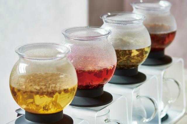 紅茶・ハーブティー・緑茶など様々なお茶を抽出しながら、キレイな茶葉の色を愉しめます。抽出中の時間も含めて、いつものティータイムを華やかに演出します。