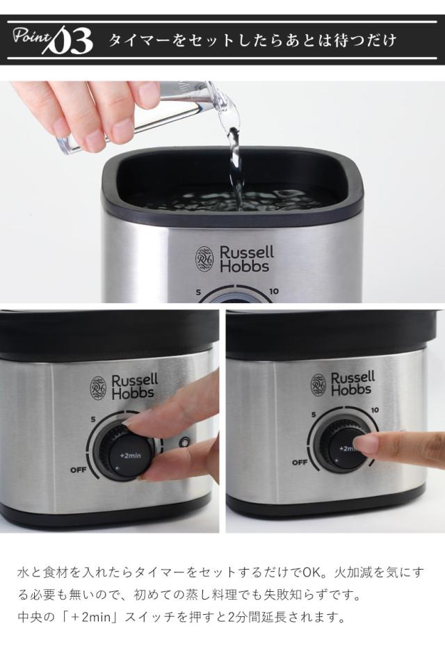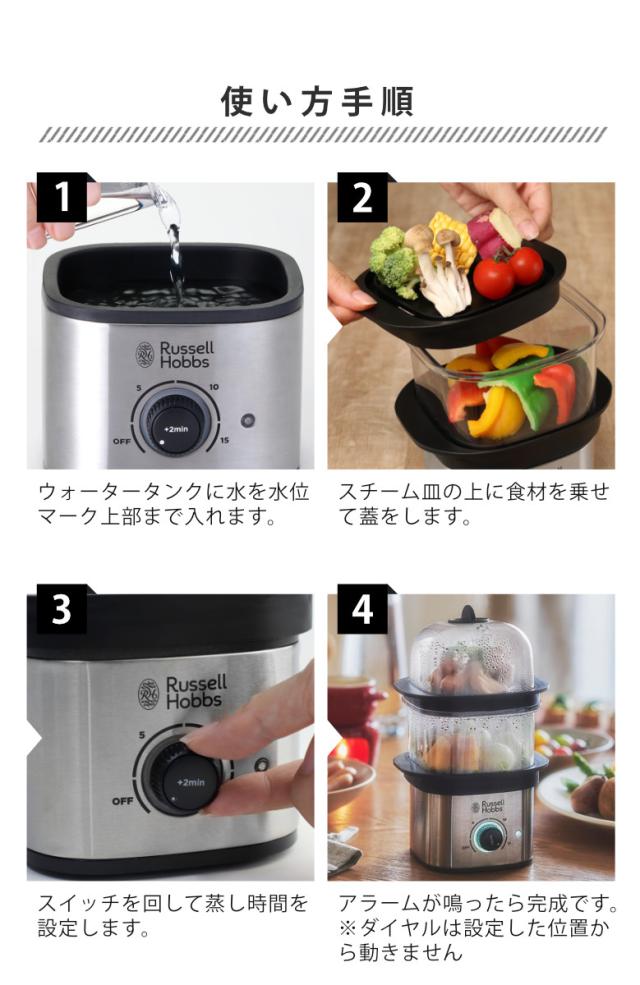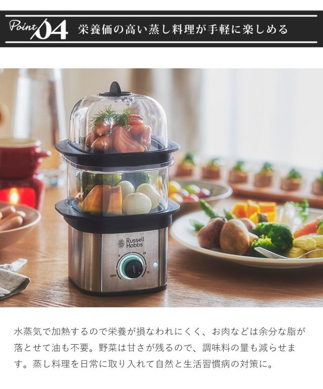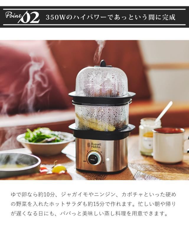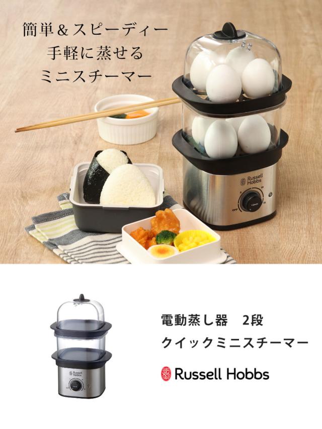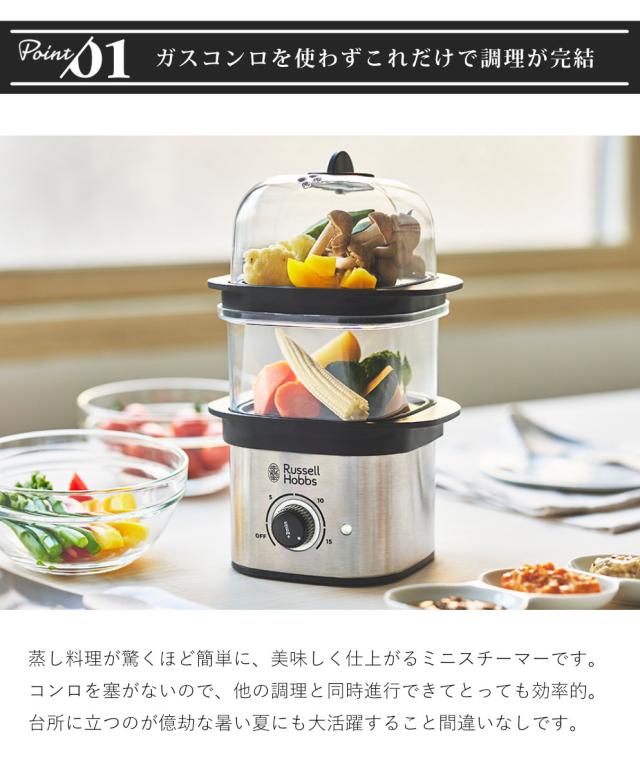 Russell Hobbs 電動蒸し器 2段 クイックミニスチーマー ( ラッセルホブス 蒸し器 フードスチーマー 電気蒸し器 調理家電 キッチン家電 せいろ 料理家電 スチーマー 空焚き防止機能付き タイマー機能付き )