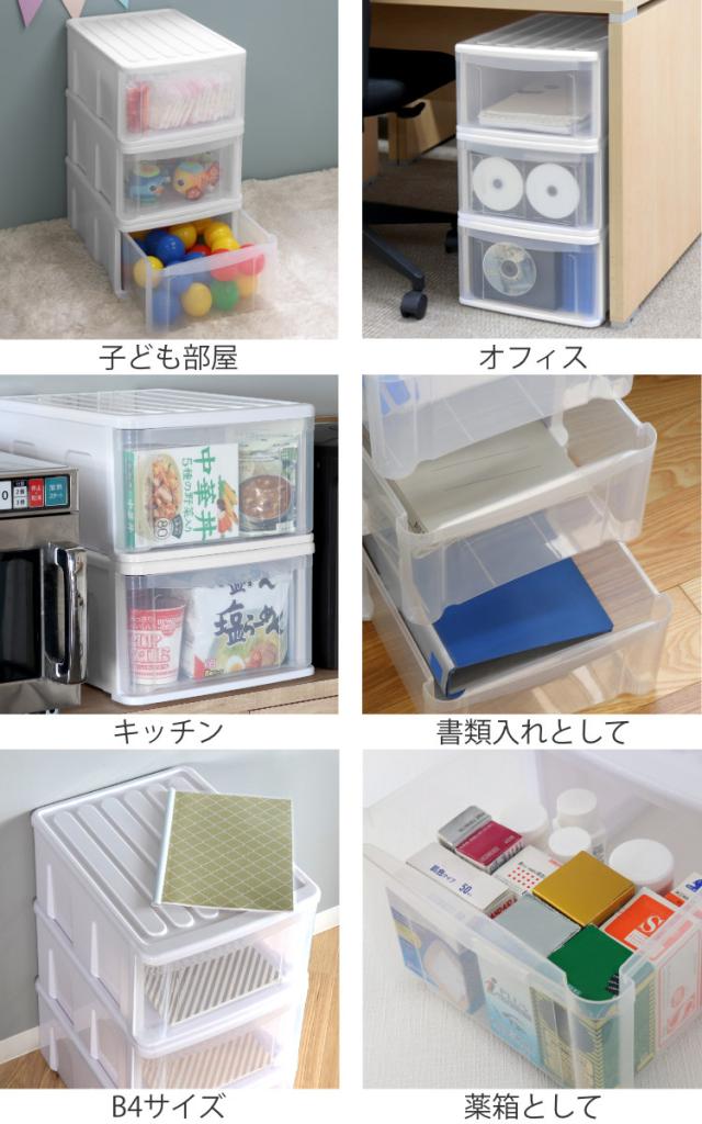 収納ケース 3個セット シンクセルト B4−F W ( 収納 引き出し プラスチック 日本製 収納ボックス 衣装ケース 衣類ケース クリア 小物 ストッカー 書類 キッチン オフィス 薬箱 ケース ボックス 衣類 小物収納 積み重ね )