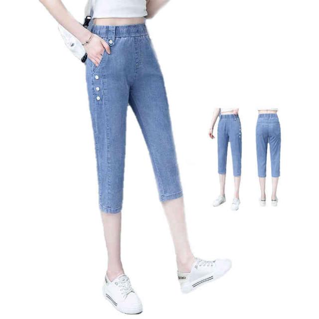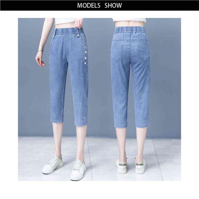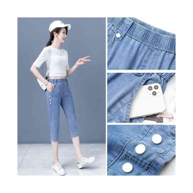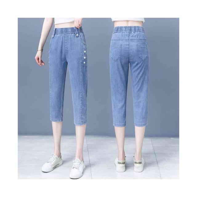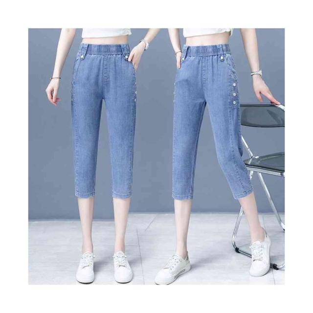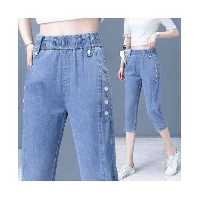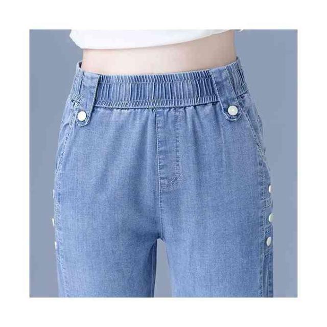 デニムパンツ レディース パンツ 7分丈 春夏 デニム ストレートパンツ カジュアルパンツ ハイウエスト 大人 ジーンズ ジーパン 着痩せ ウエストゴム 薄手 ストレート デニム ボトムス カジュアル 送料無料 無地 シンプル