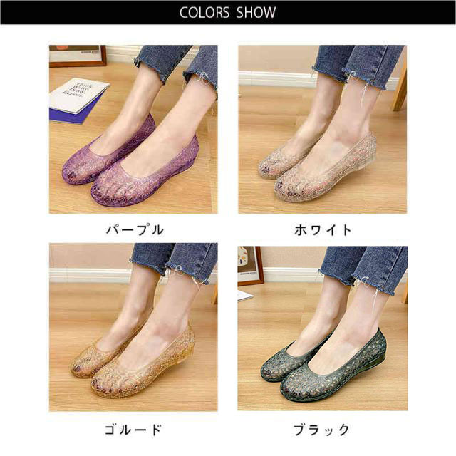 サマーシューズ サンダル レディース パンプス 送料無料 メッシュパンプス ビーチサンダル レインシューズ 透かし編み おしゃれ 夏 メッシュシューズ 夏サンダル ビーチサンダル パンプス ぺたんこ ウエッジソール 軽量 ラメ入り