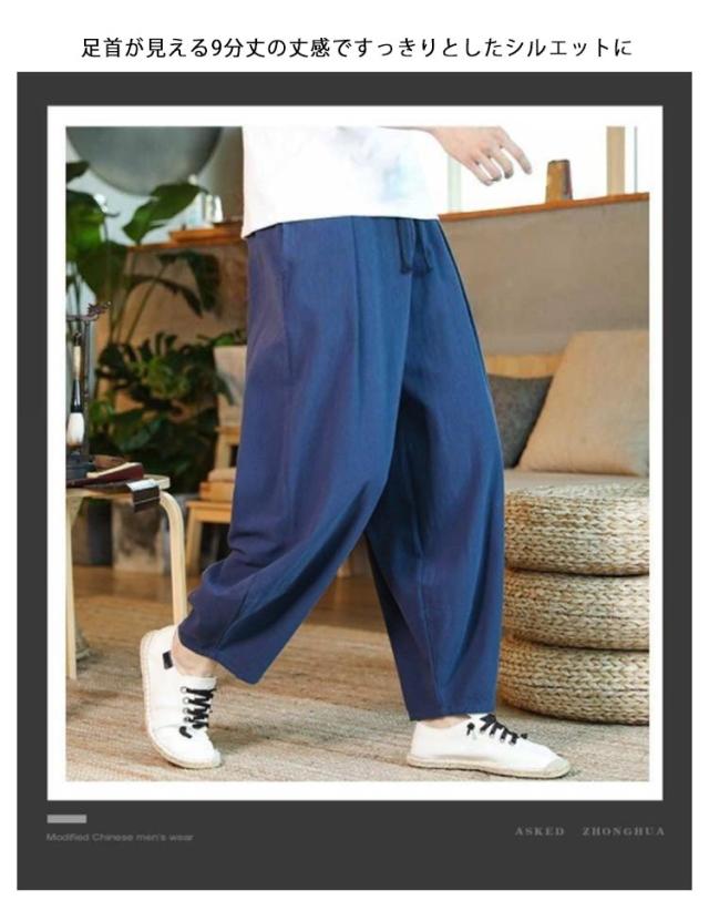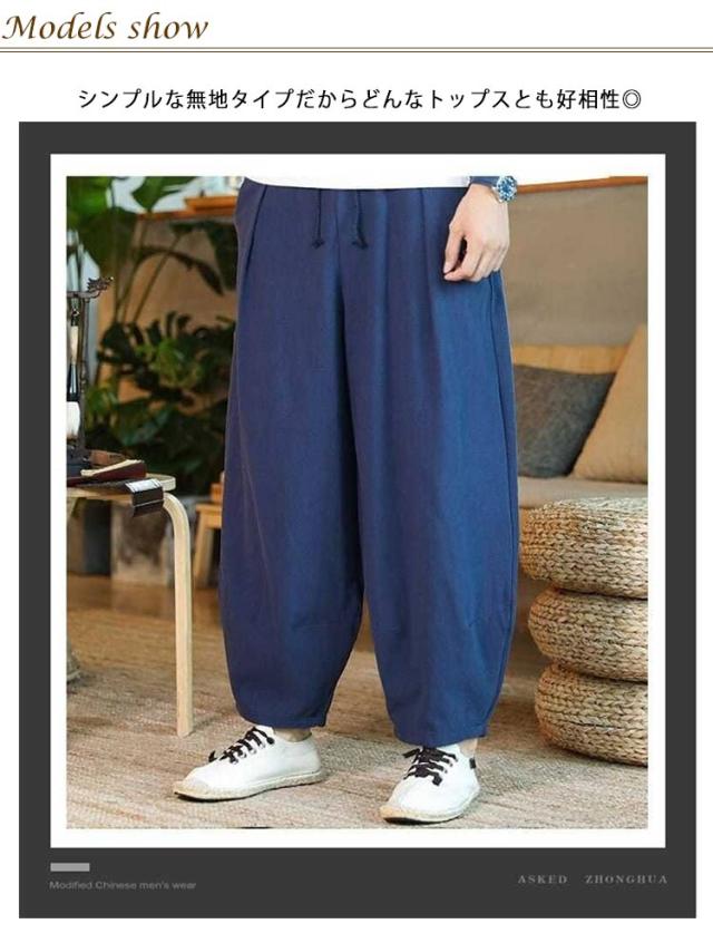 サルエルパンツ 綿麻 メンズ アラジンパンツ 送料無料 ワイドパンツ 綿麻 パンツ リネンパンツ リラックス パンツ ロングパンツ イージーパンツ 大きサイズ 無地 涼しい 夏