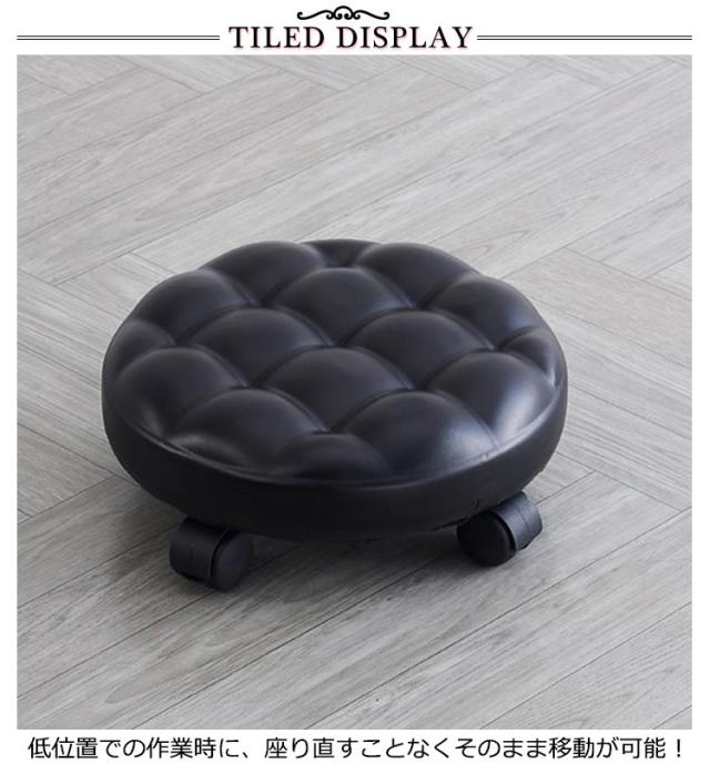 スツール 椅子 ラウンドスツール 低め 丸椅子 ロースツール キャスター 厚手クッション PUレザー 直径33cm イス 低い椅子 フットスツール フットケアスツール サロン ネイル ペディキュア 施術 作業スツール 美容室 椅子 ロースツール