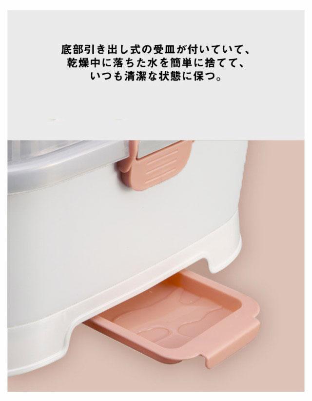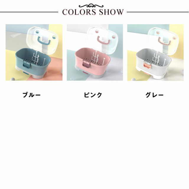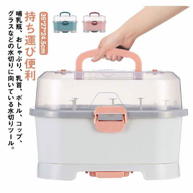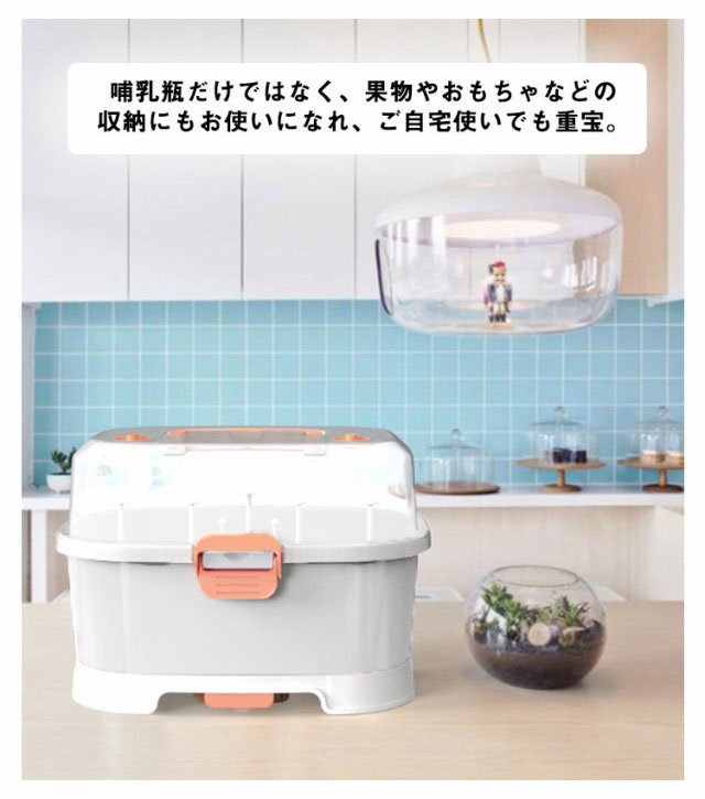 | 哺乳瓶、おしゃぶり、乳首、ボトル、コップ、グラスなどの水切りに向いている水切りツール。 透明な蓋で中身が一目瞭然。 洗浄された哺乳瓶、食器をほこりや雑菌などからしっかり守り、より衛生的に使える。 底部引き出し式の受皿が付いていて、乾燥中に落ちた水を簡単に捨てて、いつも清潔な状態に保つ。 食品グレードPP素材を採用して、無毒無味、安全安心。頑丈な作りで、耐久性に優れる。 TPR製柔らかい取っ手付きなので、持ち運びに便利、スタイリッシュなデザインも魅力。 哺乳瓶だけではなく、果物やおもちゃなどの収納にもお使いになれ、ご自宅使いでも重宝。 | |