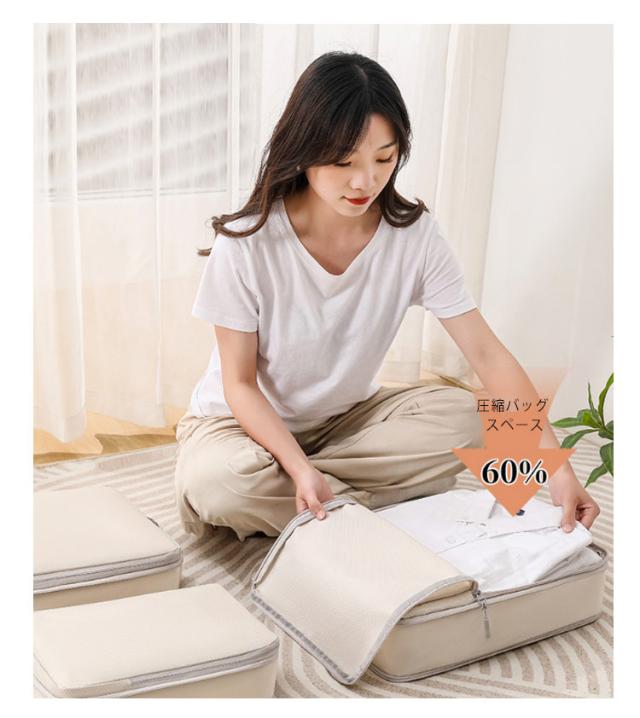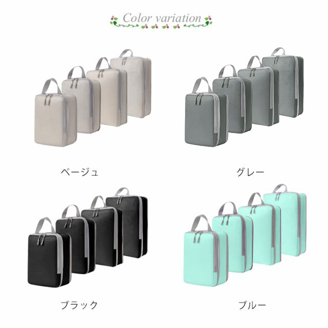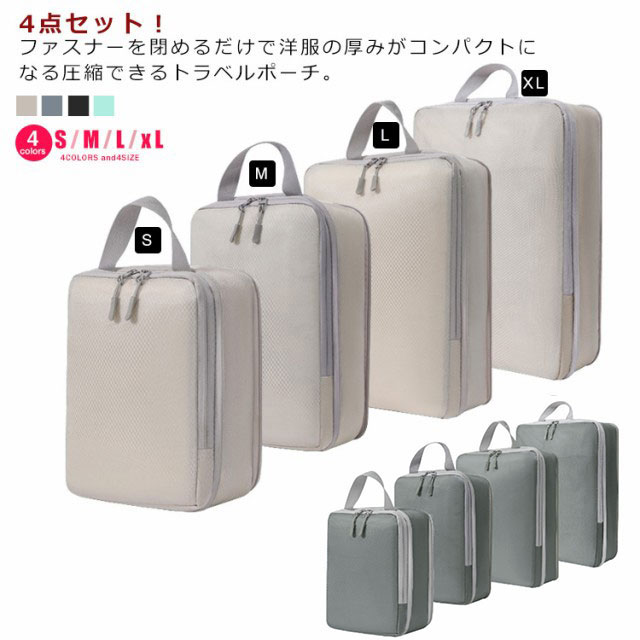 4点セット 圧縮 トラベルポーチ 旅行用圧縮袋 衣類 旅行 圧縮ポーチ 撥水 防水 ファスナー圧縮 コンパクト 収納 トラベル 圧縮バッグ スペース60%節約 大容量 衣類仕分け 収納袋 おしゃれ 節約 軽量 出張 旅行 簡単 防災グッズ 送料無料