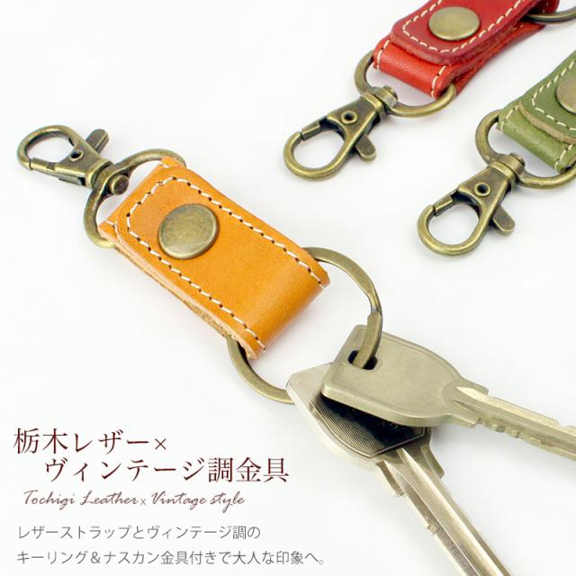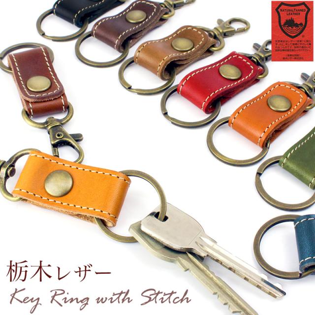栃木レザー ステッチ付き キーリング 日本製 牛革 ナスカン付き メンズ レディース Sサイズ