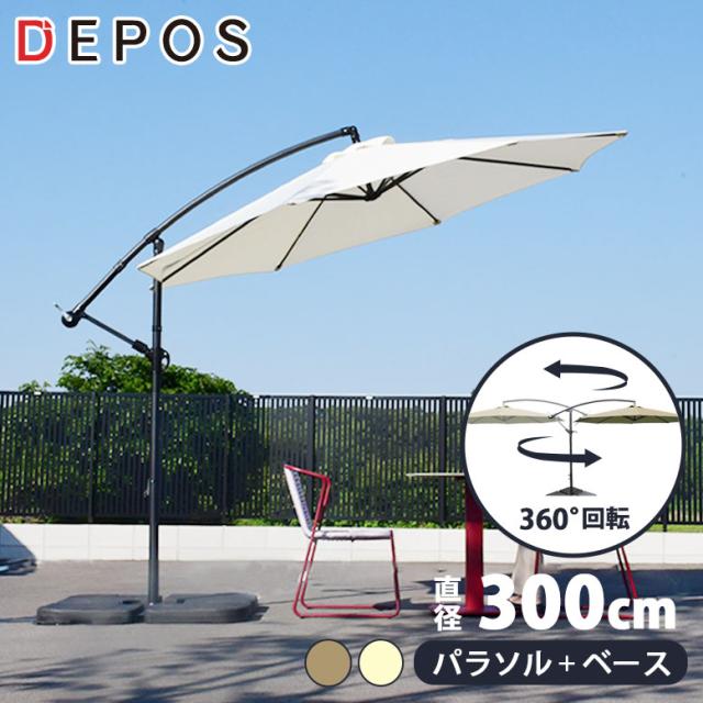 ガーデンパラソル 自立型 大型ベース付き 日よけ UV おしゃれ ハンギングパラソル360 3m ウェイト付【大型宅配便】hnw1