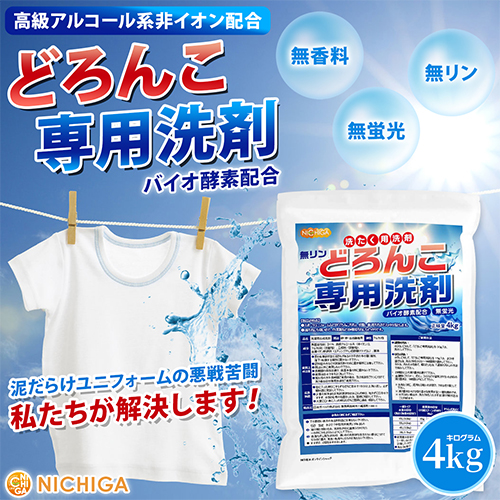 どろんこ専用洗剤(無リン) 4kg バイオ酵素配合 高級アルコール系 無香料・漂白剤不使用 スポーツユニフォームなどの頑固汚れにもピッタリ NICHIGA(ニチガ) TK1