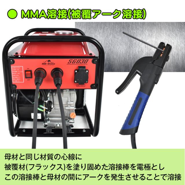 エンジン溶接機 発電機兼用溶接機 ガソリンエンジン溶接機 100V 最大出力1000W 定格使用率50% MMA 照明 電源 金具 門扉 補修 鉄板 アート diy 防災 sg030