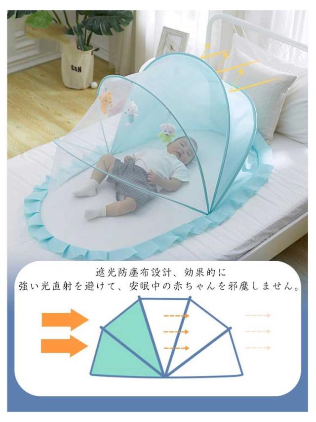 赤ちゃん蚊帳 かぶせるだけ かわいい ベビーベッド 送料無料 片手で ベビー ベビー蚊帳 ワンタッチ カヤ 蚊帳 蚊よけ 虫よけ 風よけ 猫対策 猫の侵入防止 犬の侵入防止 折り畳み