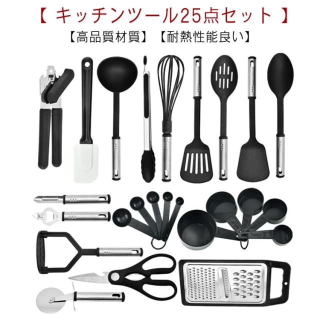| 【 キッチンツール25点セット 】 【高品質材質】 【耐熱性能良い】 キッチンツールセット 食品級シリコンを採用して、 ソフトで握りやすいし、抗菌で健康なキッチンツールで、安心にご利用できます。 しっかりした作り 優れたスチールコアーがあり、 よく製造されて、耐熱性能良いし耐久性あり、長く利用できます。 | |