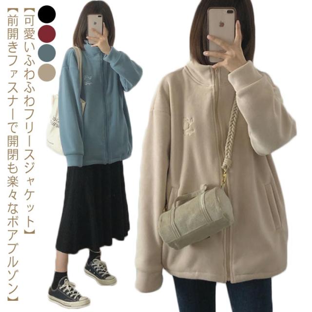 フリース ジャケット スタンドカラー 冬 秋冬 レディース 秋 アウター ジップアップ ジップアップ 軽量 ハイネック カジュアル ゆったり シンプル かわいい 大きいサイズ おしゃれ カーディガン