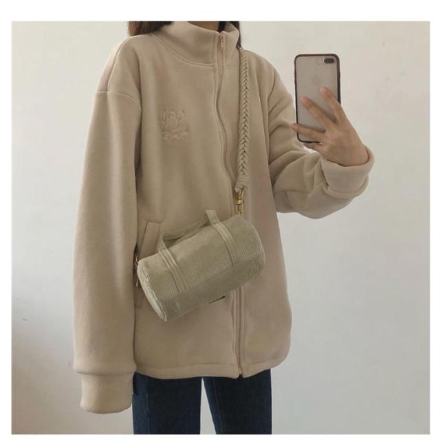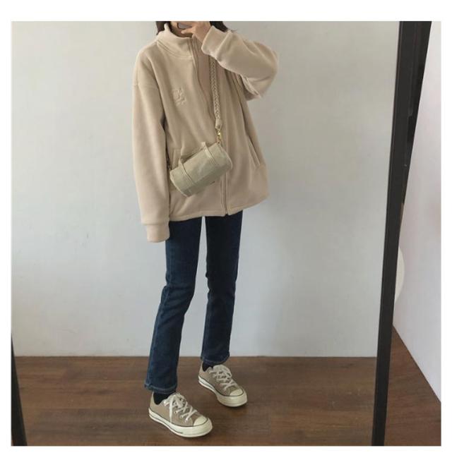 | 【可愛いふわふわフリースジャケット】 【前開きファスナーで開閉も楽々なボアブルゾン】 ワンマイルウェアや普段着にも気軽に着られる羽織りアウター。 ゆったりめでストレスフリーな着心地。 便利なサイドポケット、デザインのポイントでもあるお洒落で可愛い胸刺繍。 暖さをキープしながら大人可愛いシンプルなカジュアルスタイルが楽しめます。 | |