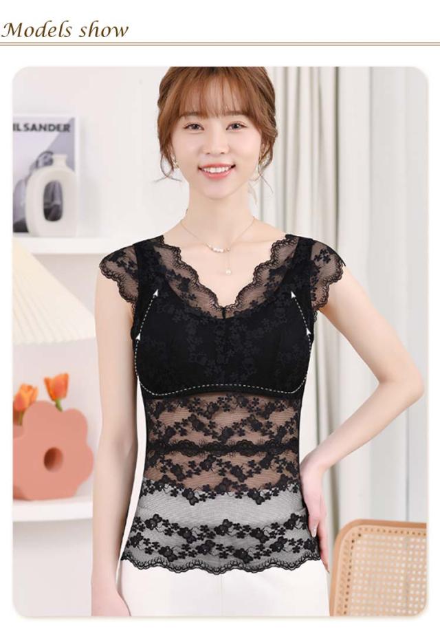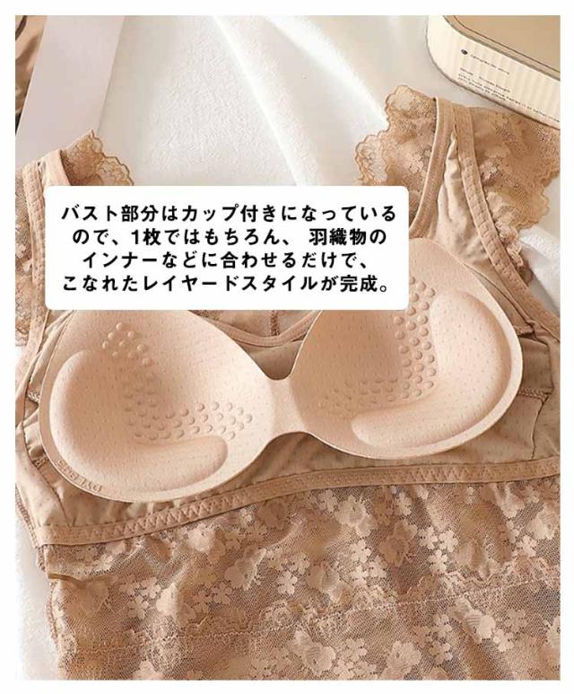 肌見せ 透かし 総レース 送料無料 チラ見せ Vネック カップ付きインナー キャミソール ノースリーブ インナー ブラ紐隠し シースルー タンクトップ レース 重ね着 タンクトップ セクシー ブラトップ 大人 可愛い シンプル 透け感 肌着