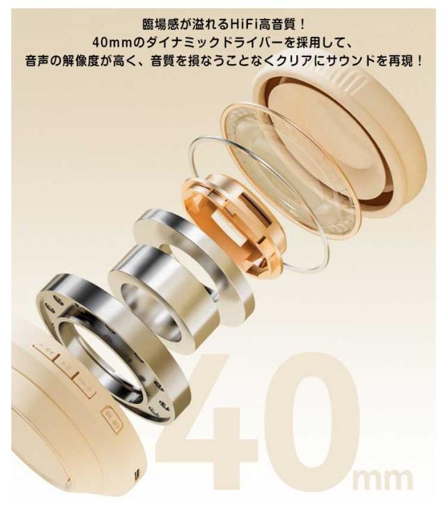 | 快適な装着感!肌に優しく高品質の素材を採用し、柔らかいイヤークッションを備えており、耳をしっかり包み込んでぴったりフィットして、長時間装着しても不快感がありません。 臨場感が溢れるHiFi高音質!40mmのダイナミックドライバーを採用して、音声の解像度が高く、音質を損なうことなくクリアにサウンドを再現! 最新Bluetooth5.3を搭載して、接続範囲、安定性やデータ転送速度も大幅に向上し、従来の音飛び、途切れ、通信問題、遅延の状況などを幅広く改善されました。 600mAh大容量のバッテリー付き、1回のフルー充電で最大16時間の連続使用が可能です。 ワイヤレスの無線接続により、市販されている99%以上のBluetoothデバイスに適用されます。また、付属の3.5mmオーディオケーブルの有線接続でPS5、PS4、switch、PC、パソコン、タブレット、スマホなどのデバイスと接続して使用できます。 革新的なノイズキャンセリング技術を採用し、騒がしい場所にいても、クリアで快適な通話を体験できます。明瞭な音声通話を実現し、リモート会議やテレワークをもっと快適に! IPX3の防水性能を持ち、汗や小雨に濡れたりを防ぎます。ランニングやスポーツを安心してお楽しみください(※ 完全防水ではないため、完全に水の中に入ってしまったりしますと故障の原因につながります)。 ボタンを押しするだけで、快適に操作ができます。タ再生、停止、曲送り、曲戻し、音量調整、電話を受けるなどの操作ができます。 簡単タッチ操作: 音量-:クリック 前の曲:長押し 再生/一時停止:クリック 通話の応答/終了:クリック 音量+:クリック 次の曲:長押し 電源ON/OFF:長押し3秒 | |