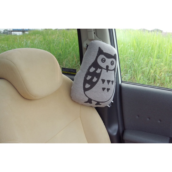車用クッション カークッション クッション 枕 まくら マクラ フクロウ ルース シートベルト枕 グレー 約28×20cm イケヒコ