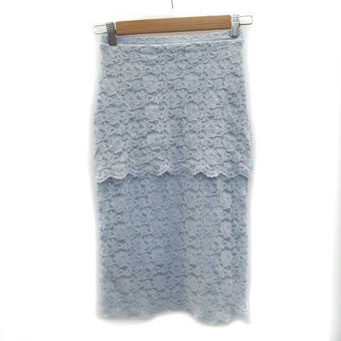 【中古】ロイヤルパーティー タイトスカート ペプラムスカート ミモレ丈 レース F ライトブルー 水色 レディース