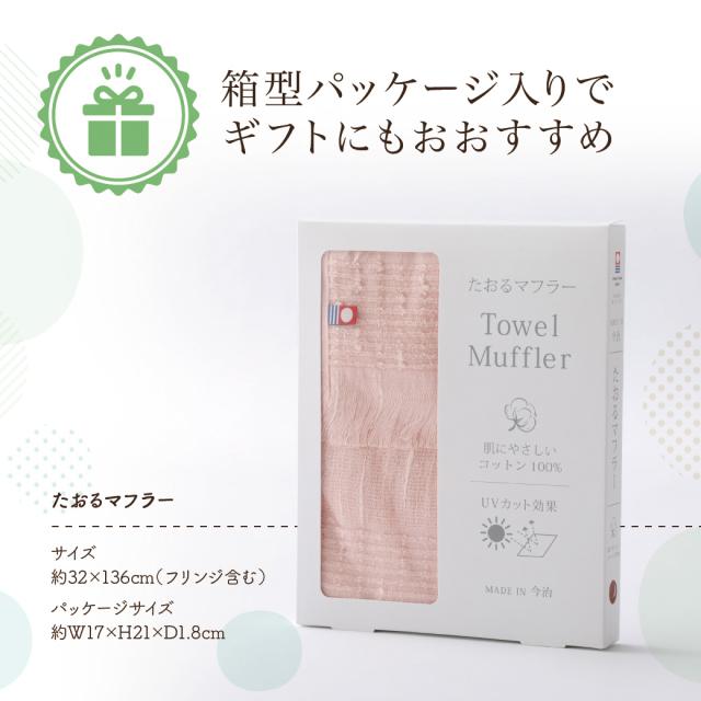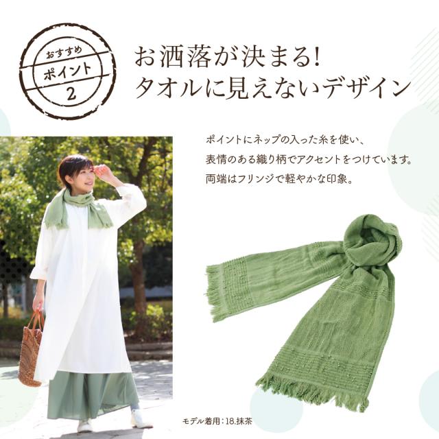 コットンをふんわり織り上げた、やさしい肌ざわりのたおるマフラーです。