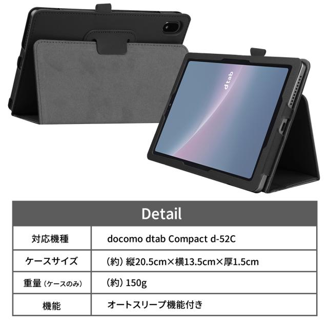 【タッチペン・専用フィルム2枚付】docomo dtab d-52C ケース カバー 手帳型 シンプル かわいい 8.4インチ ドコモ ディータブ d52c タブレットPCカバー ペンホルダ オートスリープ機能付き 軽量 Docomo シンプル ビジネス おしゃれ