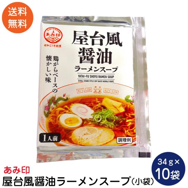 屋台風醤油ラーメンスープ 小袋10袋 業務用 ラーメンスープのみ ラーメンスープの素 調味料 中華 あみ印 ポスト投函便 送料無料