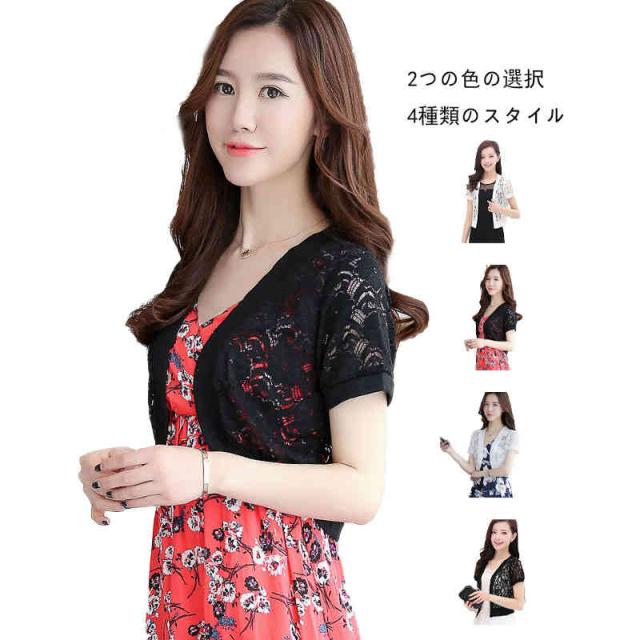 カーディガン ボレロ 総レース ショート丈カーディガン 半袖 春 夏 秋 サマーカーディガン レースカーディ ボレロ カーディガン レースカーディガン ショート丈 送料無料