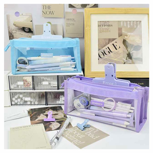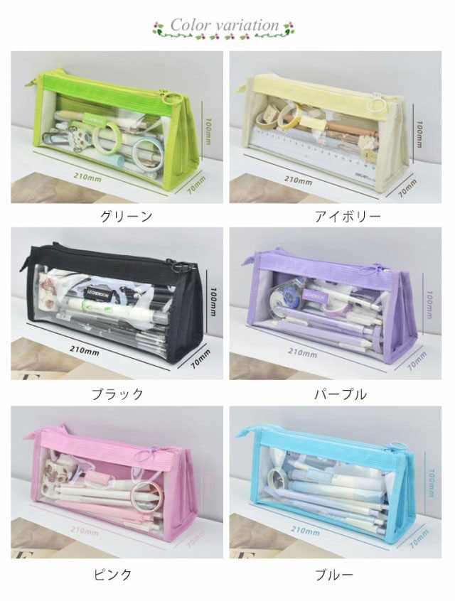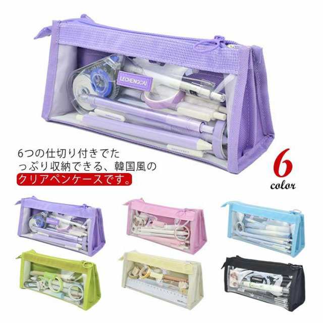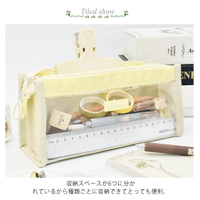 | 6つの仕切り付きでたっぷり収納できる、韓国風のクリアペンケースです。 収納スペースが6つに分かれているから種類ごとに収納できてとっても便利。 クリア素材で中身が見えやすい! しっかり自立&大容量です。ペンケースやコスメポーチとして使えます。 | |