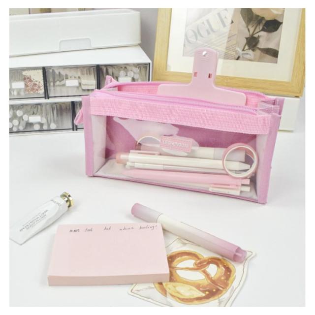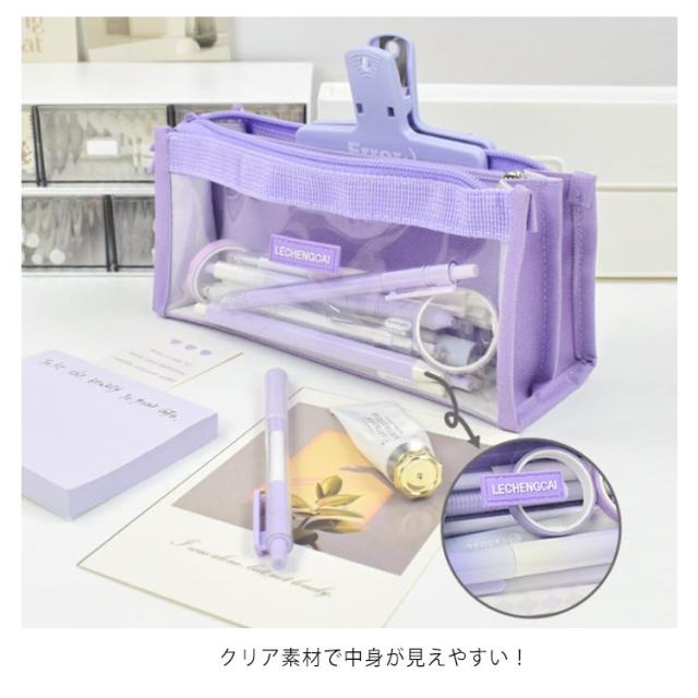 クリア ペンケース 韓国 ペンポーチ 自立型 大容量 透明 筆箱 ふでばこ 仕切り 整理整頓 文具 文房具 収納ポーチ コンパクト クリア かわいい シンプル 小物入れ 軽量 メイクポーチ 中学生 高校生 大学生 大人 社会人 ギフト 送料無料