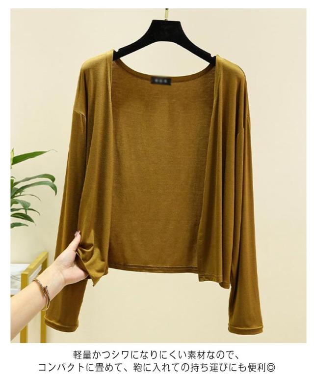 | 全11色!冷房対策や日焼け対策にも大人気なサマーカーディガン。 気になるところ隠す長袖だから、二の腕をしっかりカバー。 さらに視覚効果で脚長に見せてくれる短丈タイプ。 軽量かつシワになりにくい素材なので、コンパクトに畳めて、鞄に入れての持ち運びにも便利◎ 人気色が完売必至なので、ぜひお早目にお買い求めください!! | |