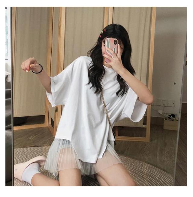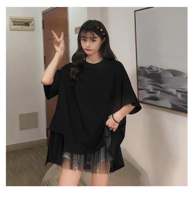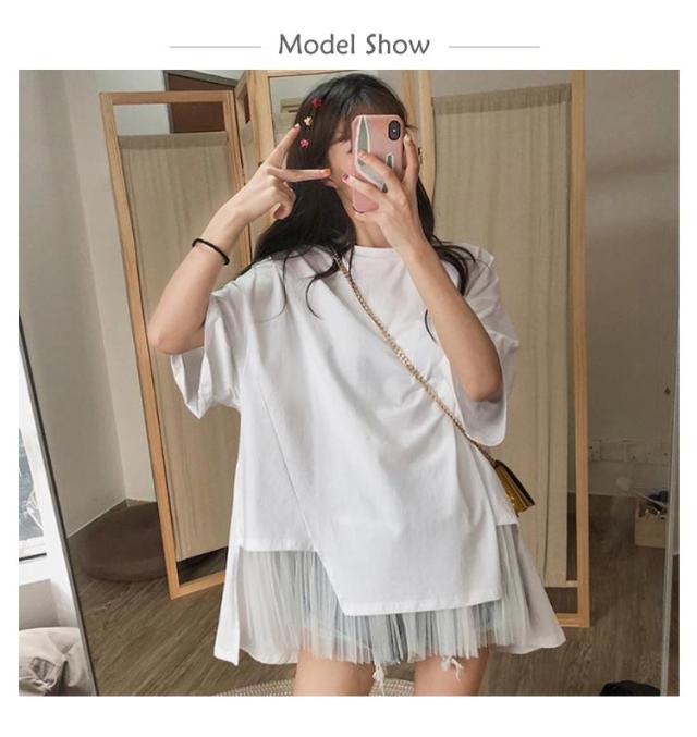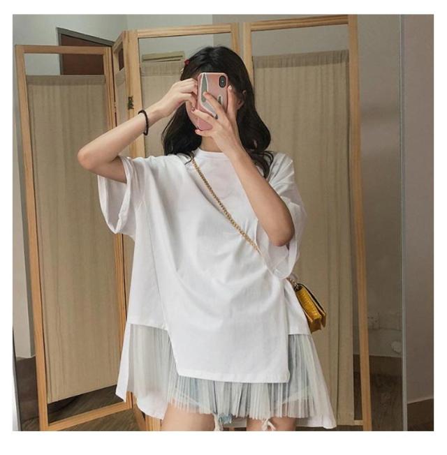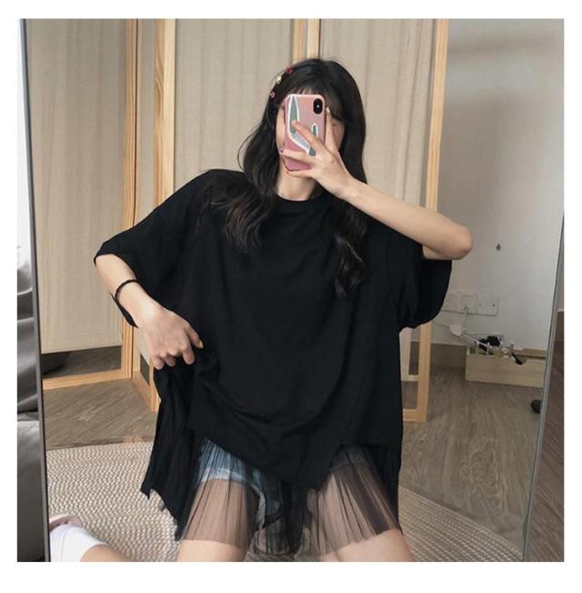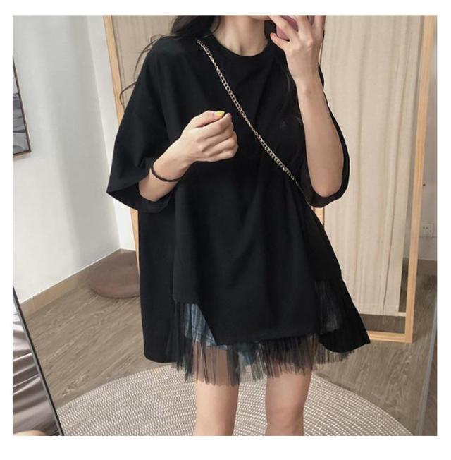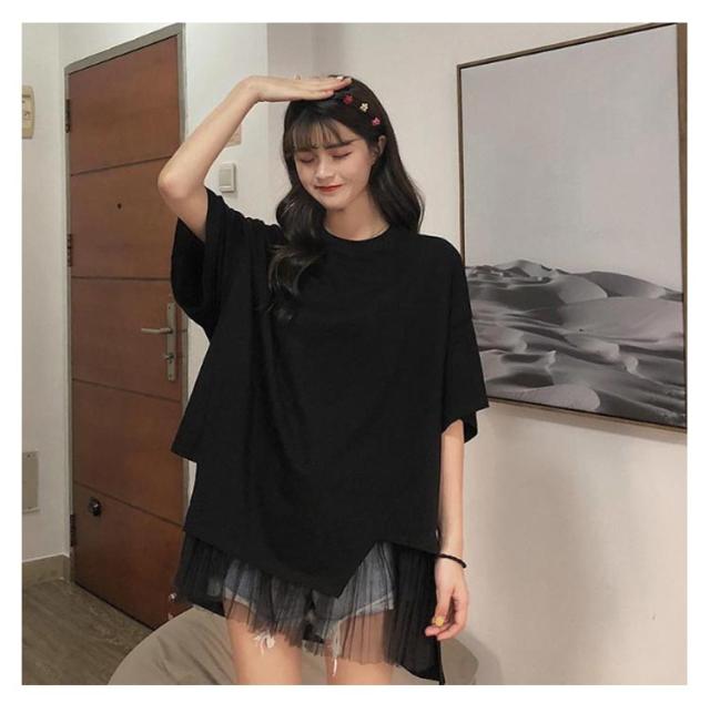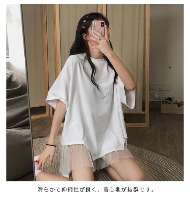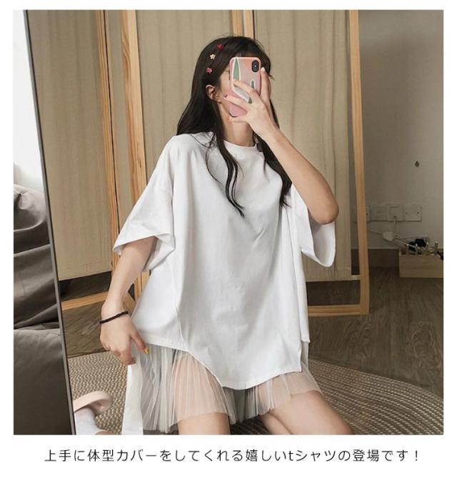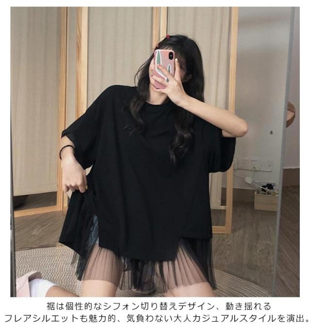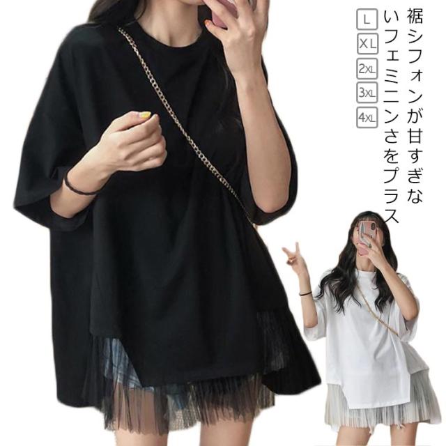 切り替えTシャツ 半袖 ブラウス レディース シフォン ロング丈 春夏 おしゃれ ゆったり 薄手 ティーシャツ 無地 シンプル トップス 体型カバー ビッグシルエット ホワイト ブラック 大きいサイズ 通学 リゾート 旅行 プレゼント 送料無料